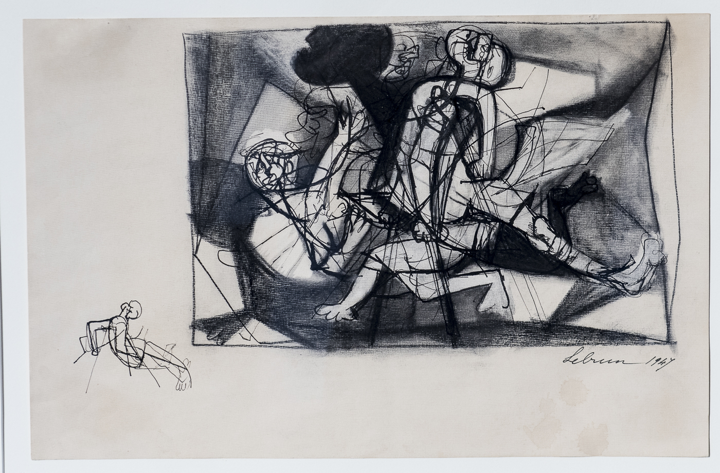 I have been getting some very interesting material for the show, including a beautiful mixed media drawing from 1947 by Rico Lebrun. This work on paper is in what appears to be its original frame, which measures 24 x 30″. A fabulous example of this pivotal artist’s work.