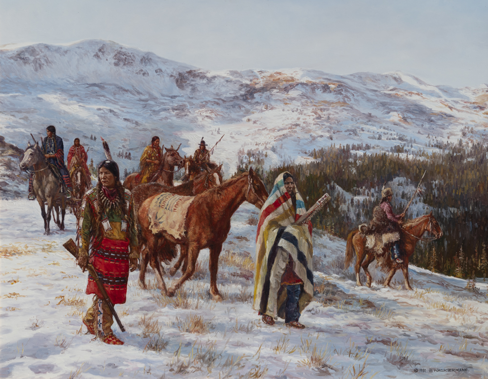 If you like Western art, a fabulous oil on board by the german painter Hubert Wackermann (b. 1945) Wackermann is known for his realistic and accurate paintings of the Native Americans. This painting is beautifully framed and measures 24 x 30″.