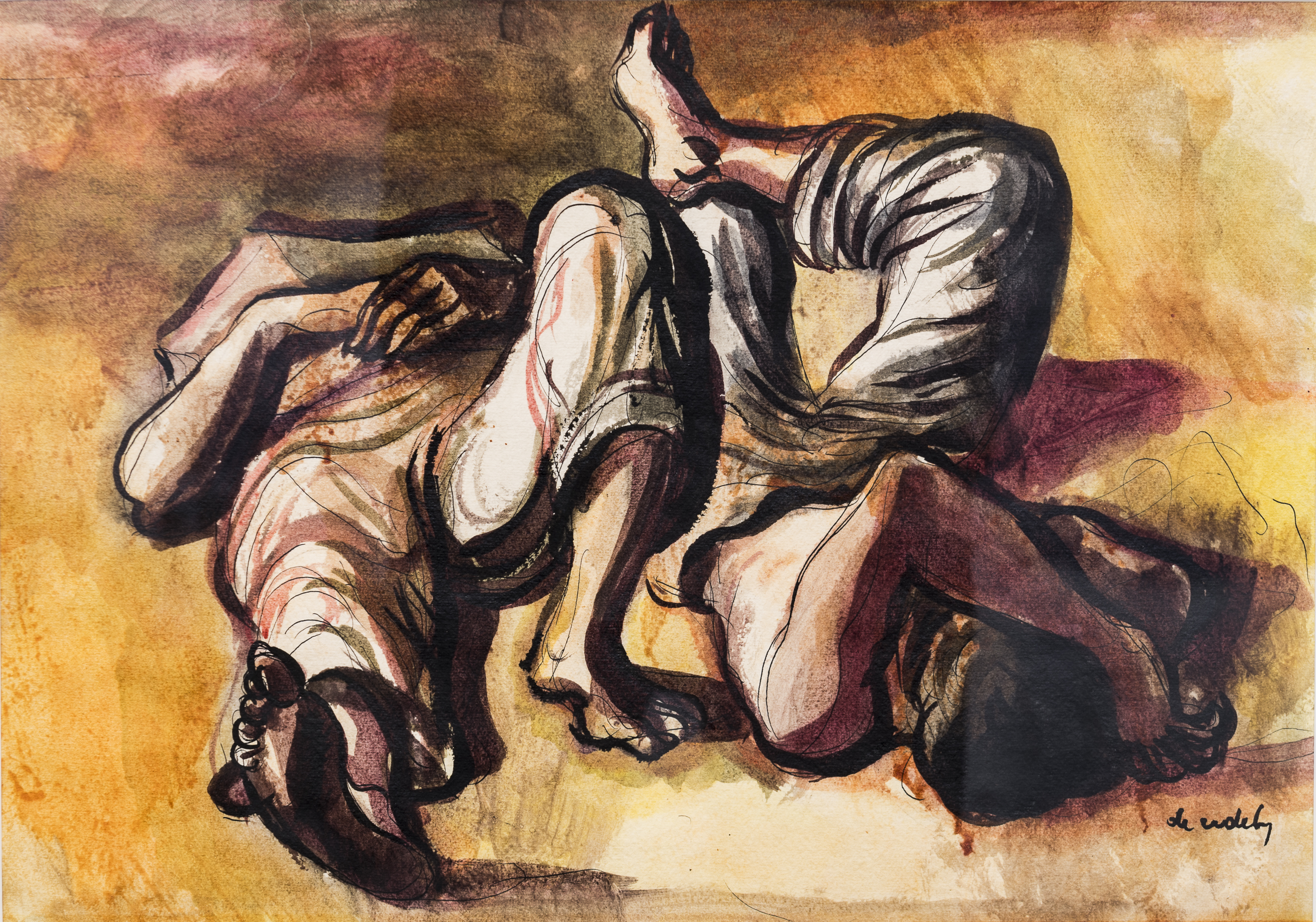 A fabulous and museum exhibited Rico Lebrun from 1947. LeBrun was widely recognized as the greatest draughtsman of the human figure in Los Angeles during his time.