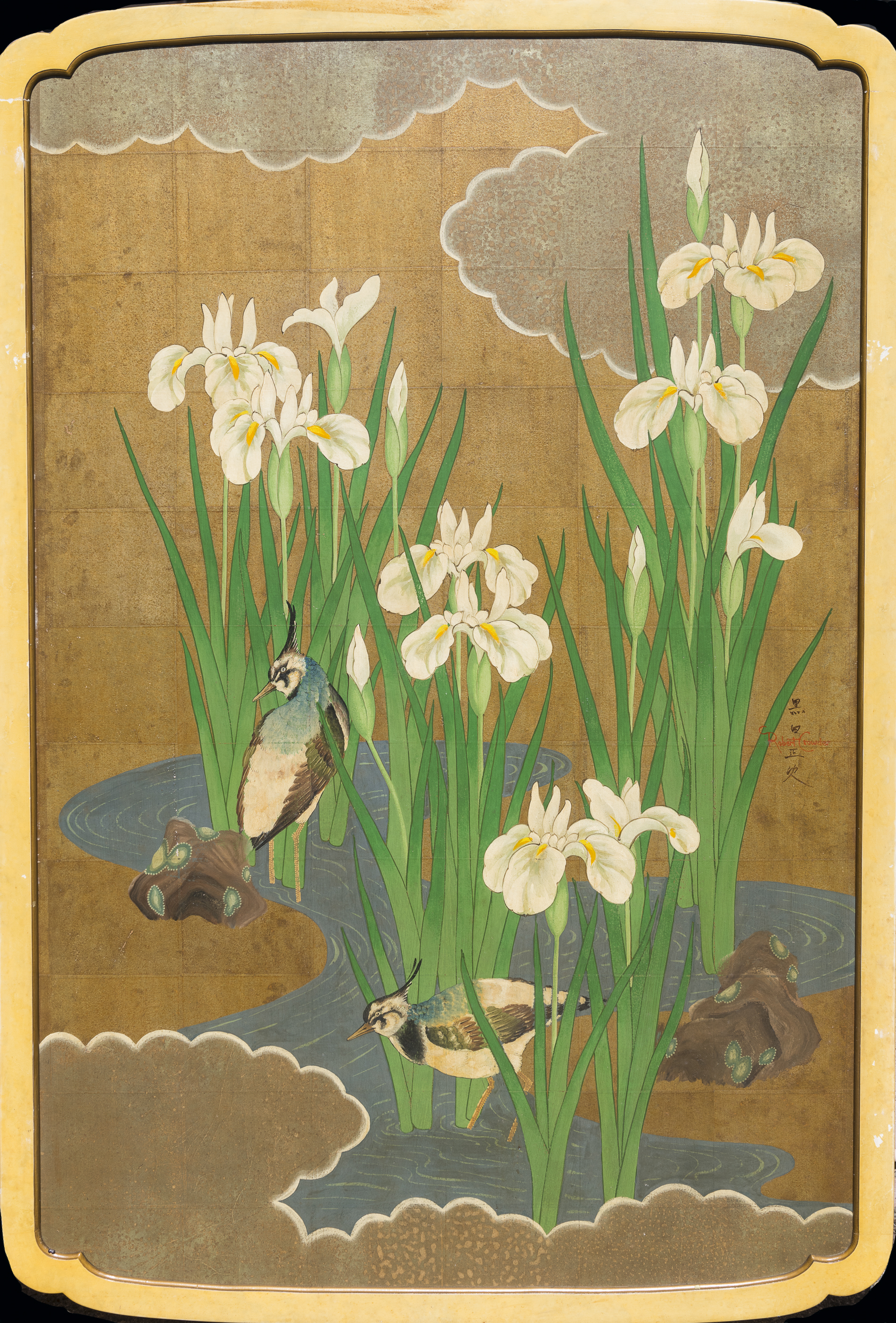 The gallery is bursting with new inventory. I will tempt you with a few things and add more stuff all week. Like these two beautiful Robert Crowder panels painted in the Nihonga style. We have another large paper screen currently being restored by this artist.