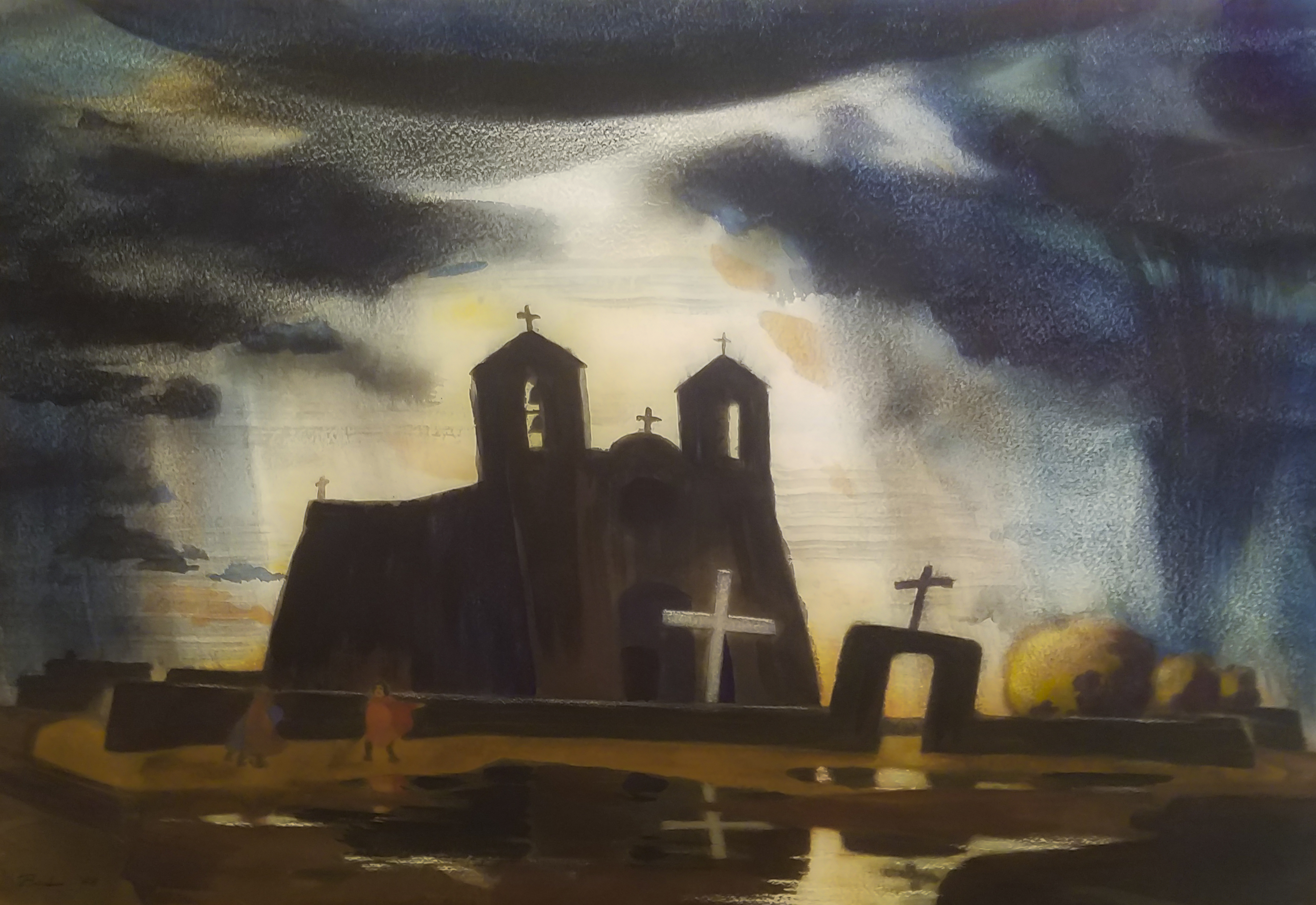 A dynamite watecolor of Taos Pueblo by Standish Backus Jr. from 1948.