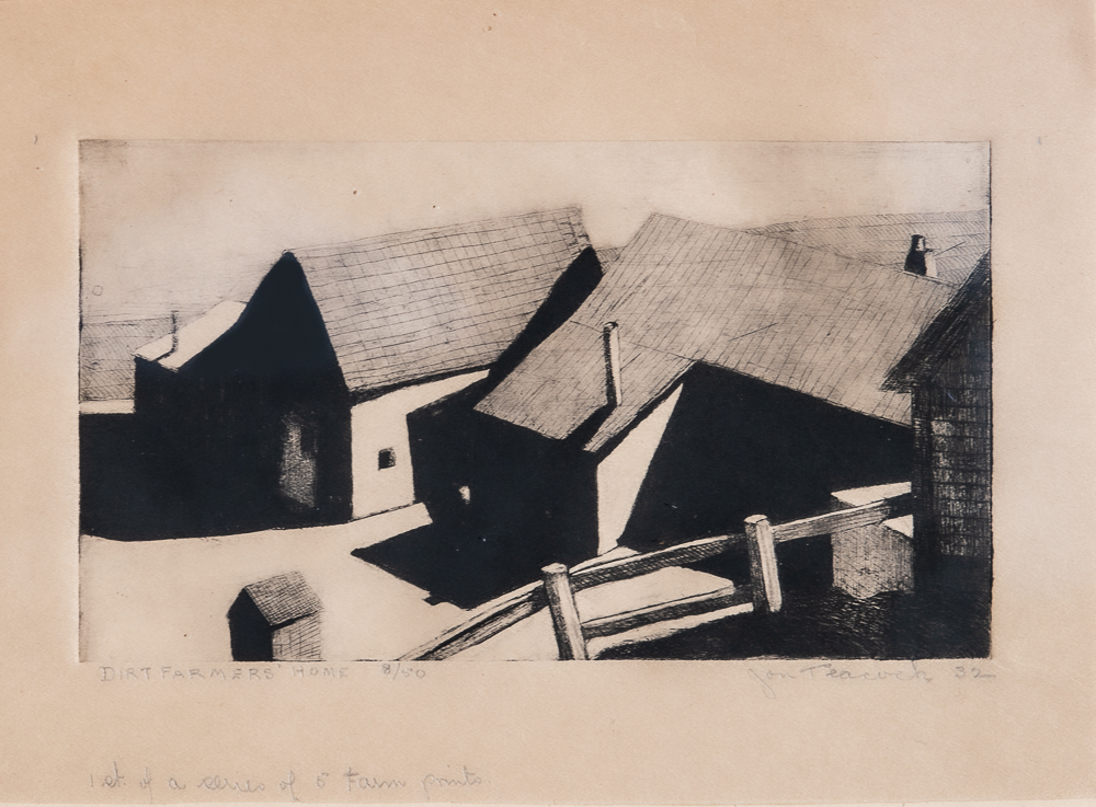 Tuesday I bought this nifty little WPA era print, Dirt Farmer’s Home by Jon Peacock. 3/50 Dated 1932. Steve didn’t want to sell it but I paid his asking price. I like the strong contrasts. Born in NYC in 1908, he was a pupil of Arshile Gorky.