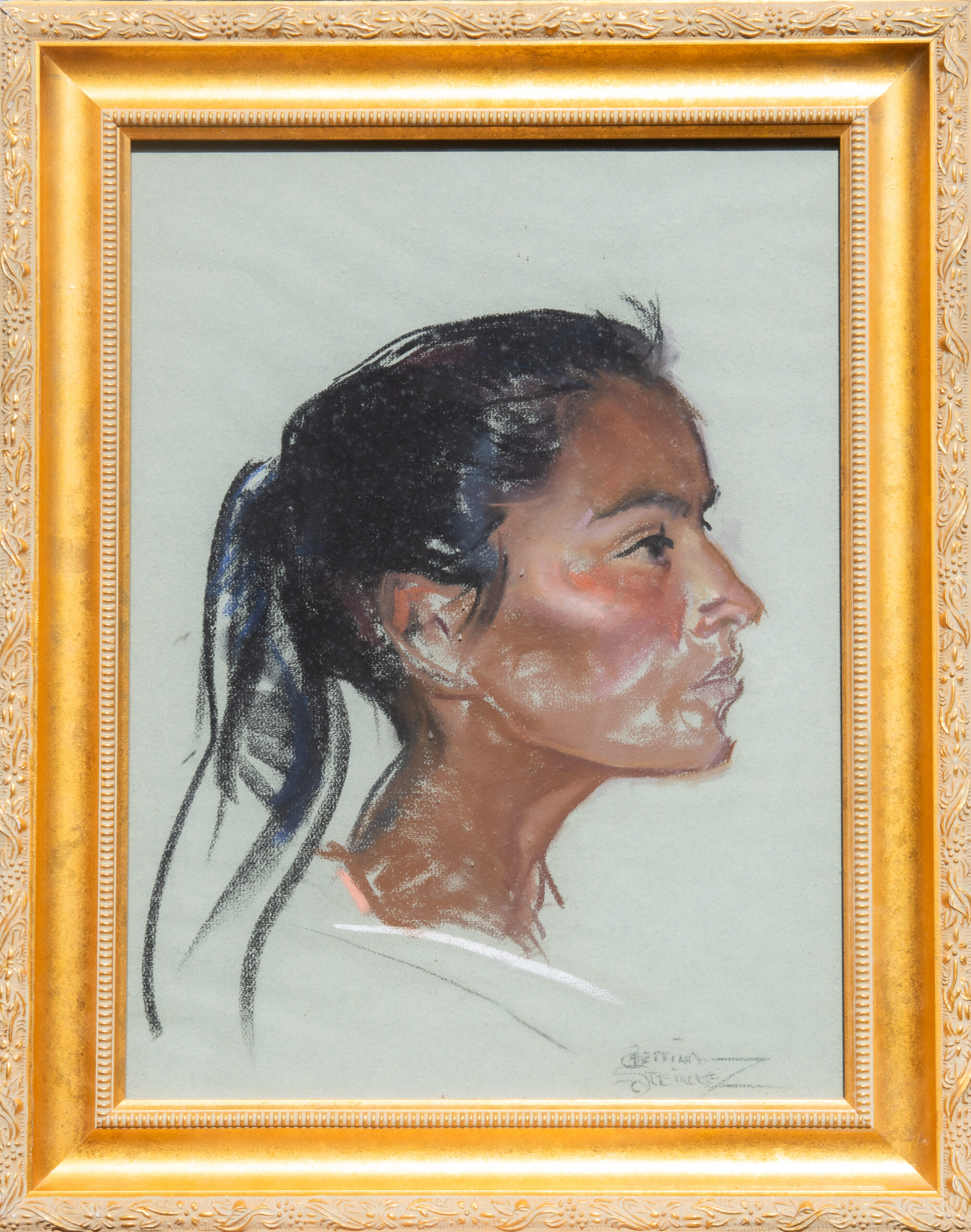 Two works by the famed Santa Fe artist Bettina Steinke (1913-1999), an oil and a pastel of a young Jody Folwell.