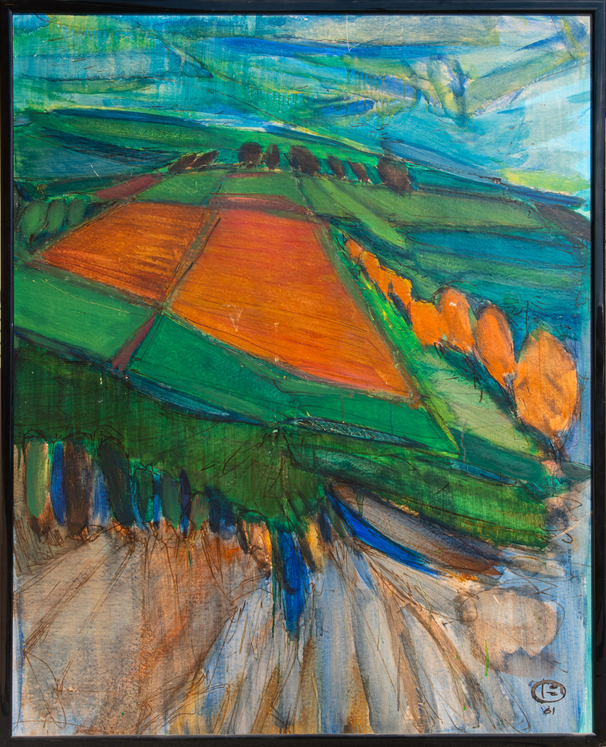 A large (48 x 36″) oil from Fletcher Benton (1931-2019) circa 1961, executed after he returned from Paris.
