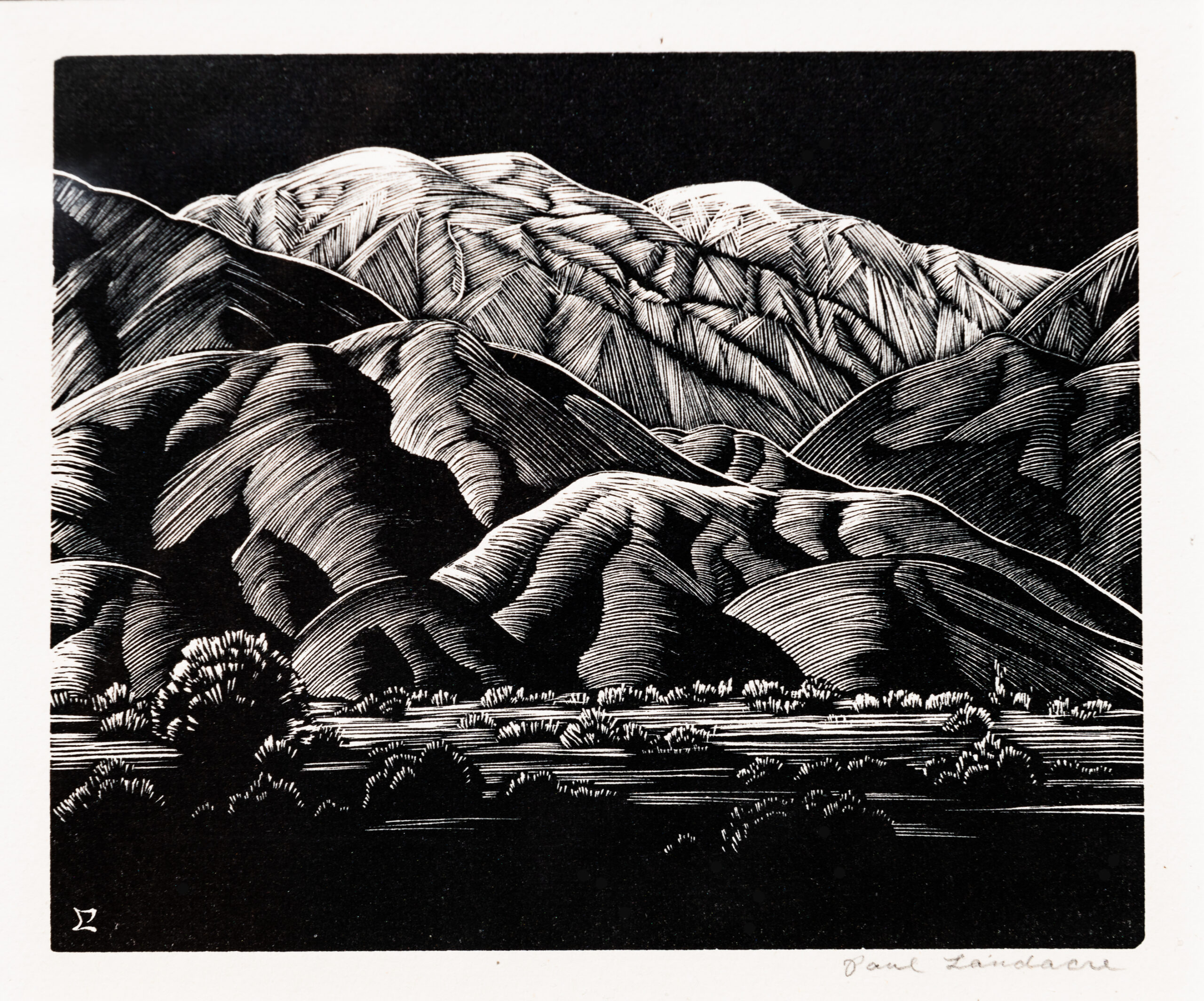 One of the rarest and greatest Paul Landacre (1893-1963) wood engravings, Baldy from 1932. Very small edition, Lovely condition. Full margins.