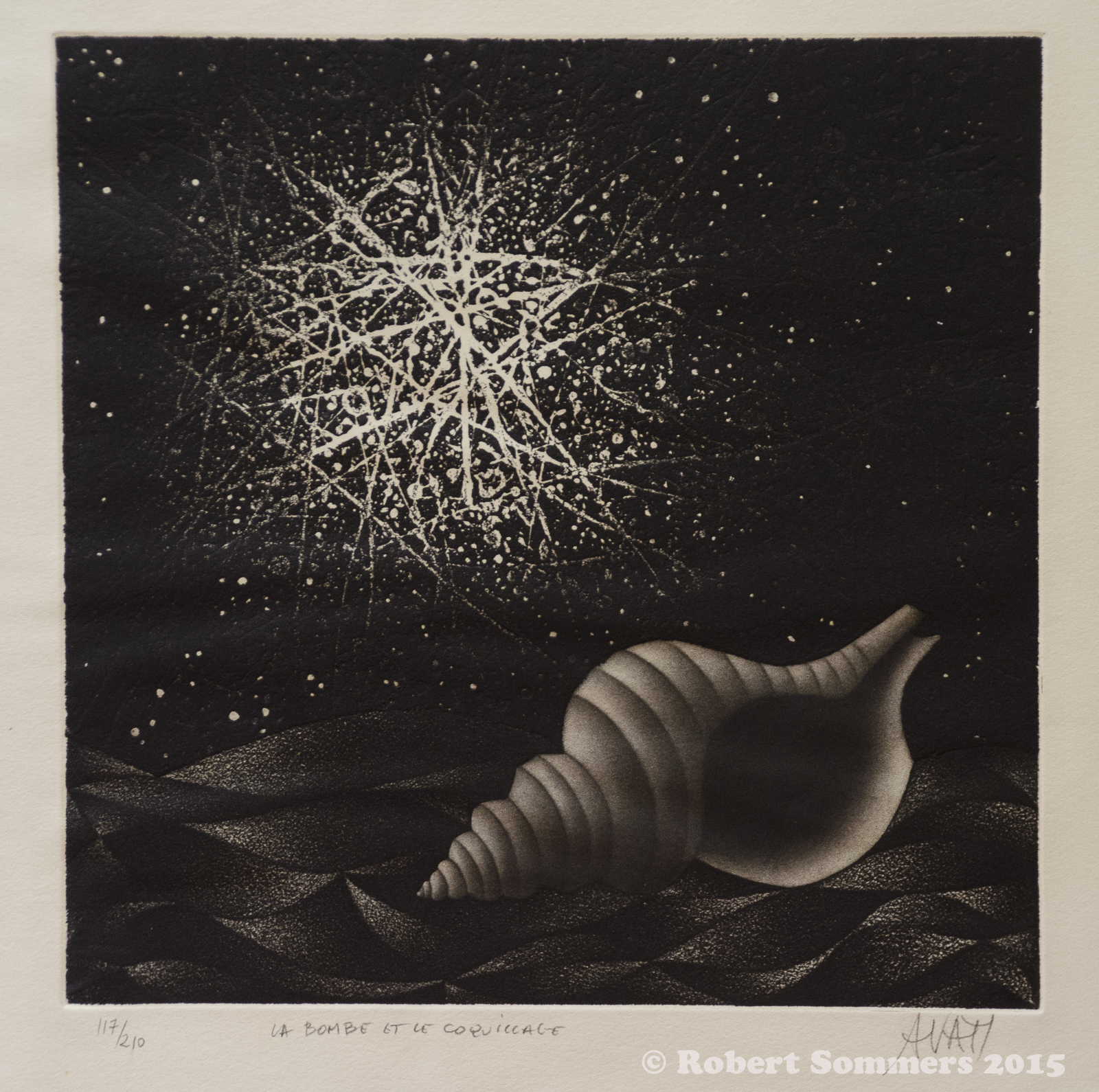 Mario Avati (1921-2009) La bombe et le coquillage mezzotint 117/210 approx. 10.5 x 10.5″ unframed $425
