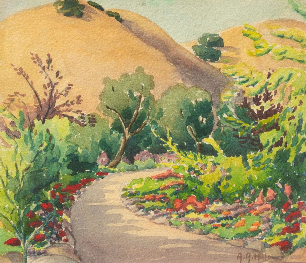 Anna Althea Hills (1882-1930) flower garden w.c. 7.5 x 9″ signed lower right $950