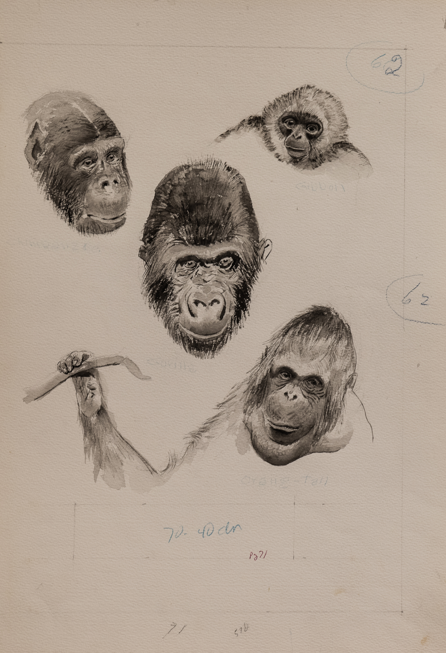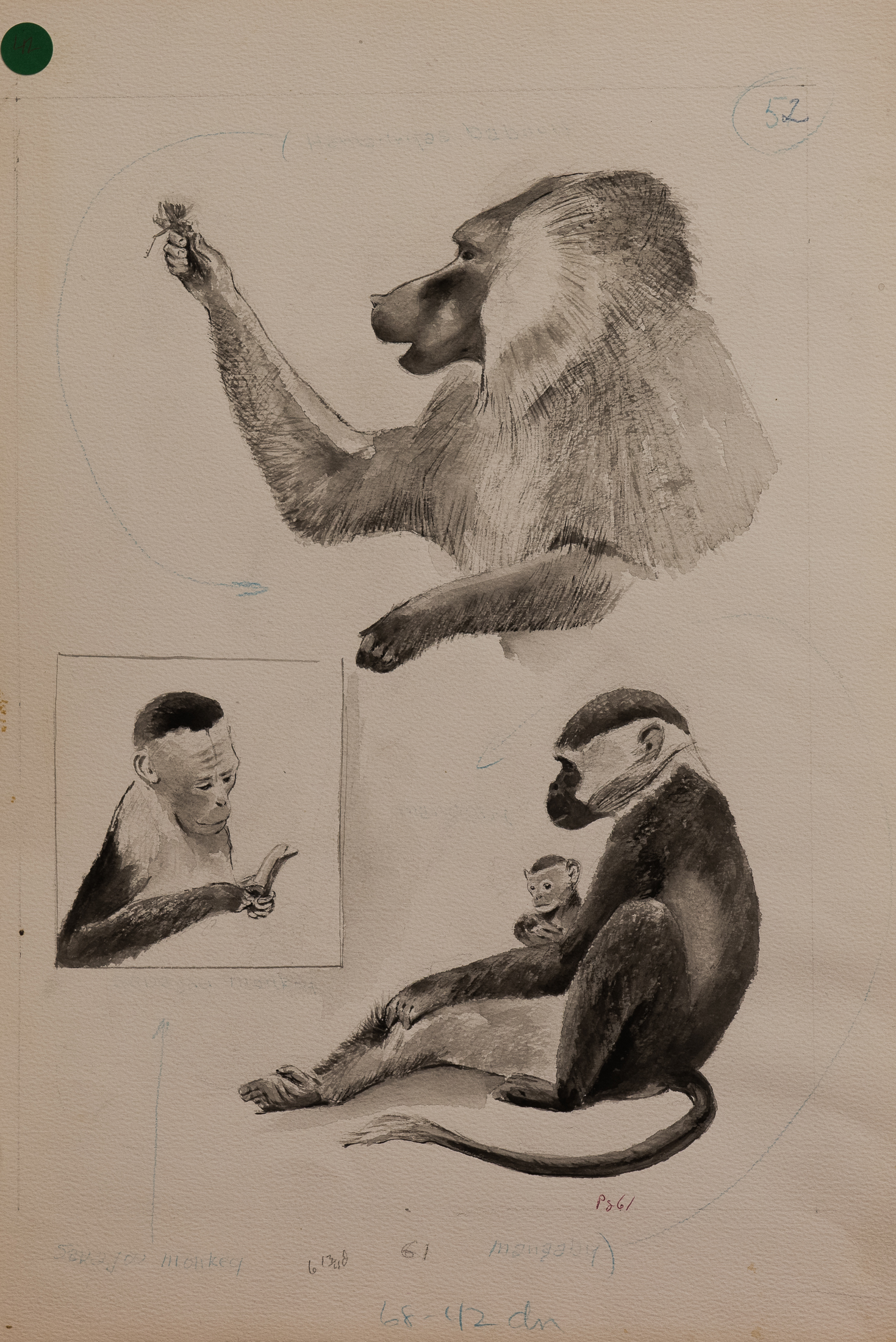 Baboon and Saragoo Monkey 19 x 14″ $275
