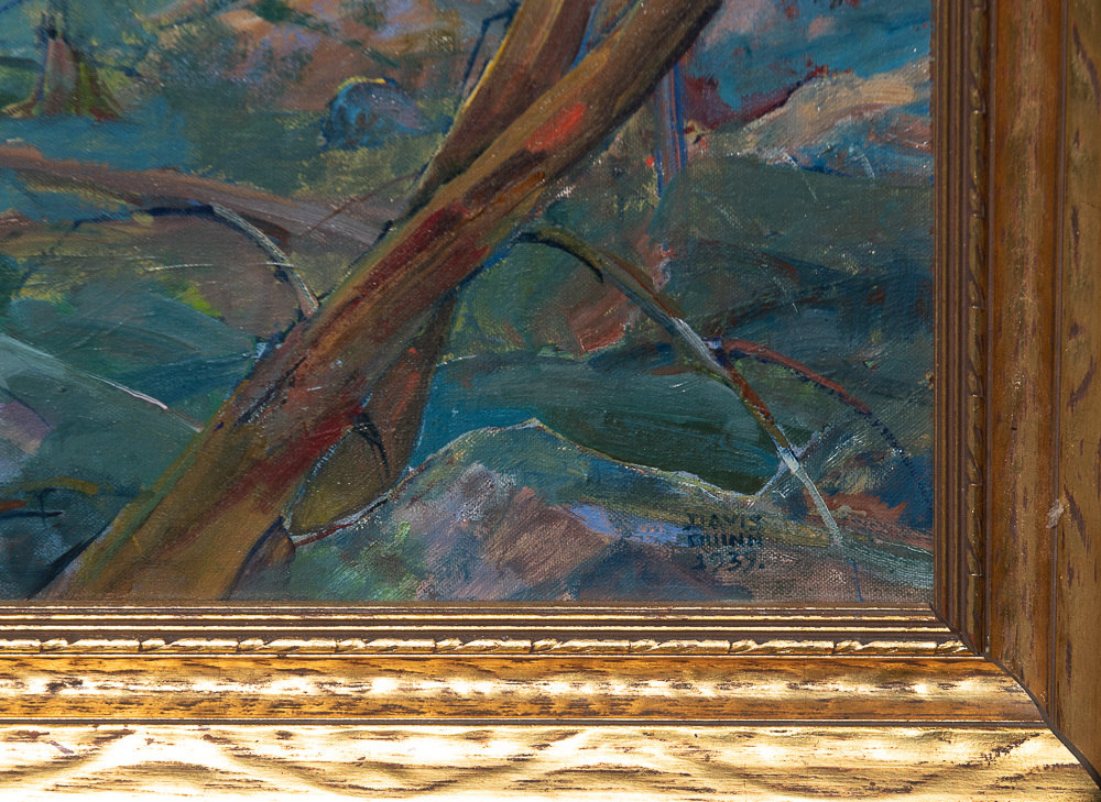 Not a lot of biographical information on this artist. This is the second oldest painting I have found from him. He was also a jazz musician and painted portraits of many famous jazz musicians, all the way through the sixties. I love his innovative style and color palette.