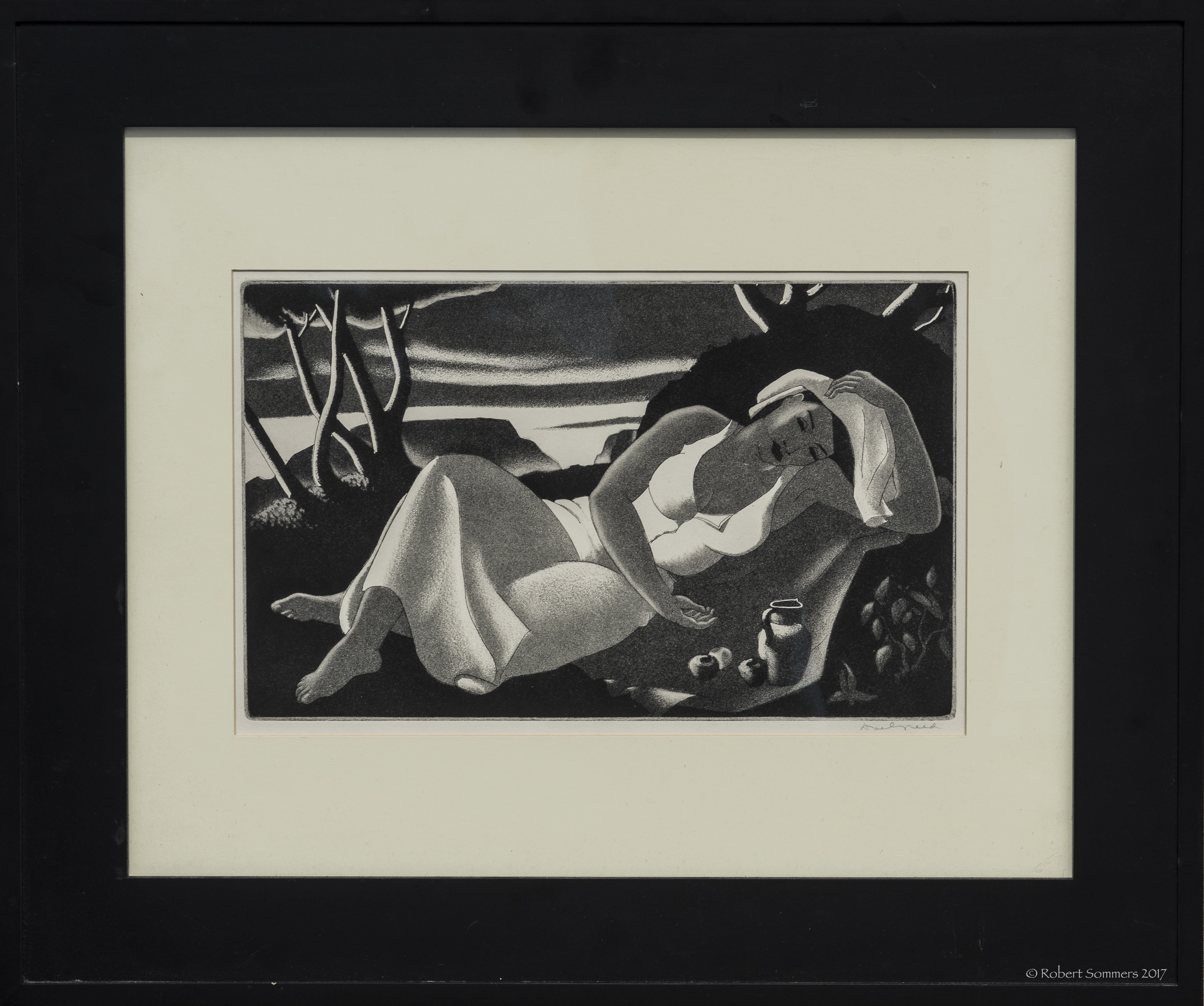 Doel Reed (1894-1985) Rest Aquatint AAA ed. of 100, 1941 8 15/16 x 14 7/8″,framed, pencil signed lower right.