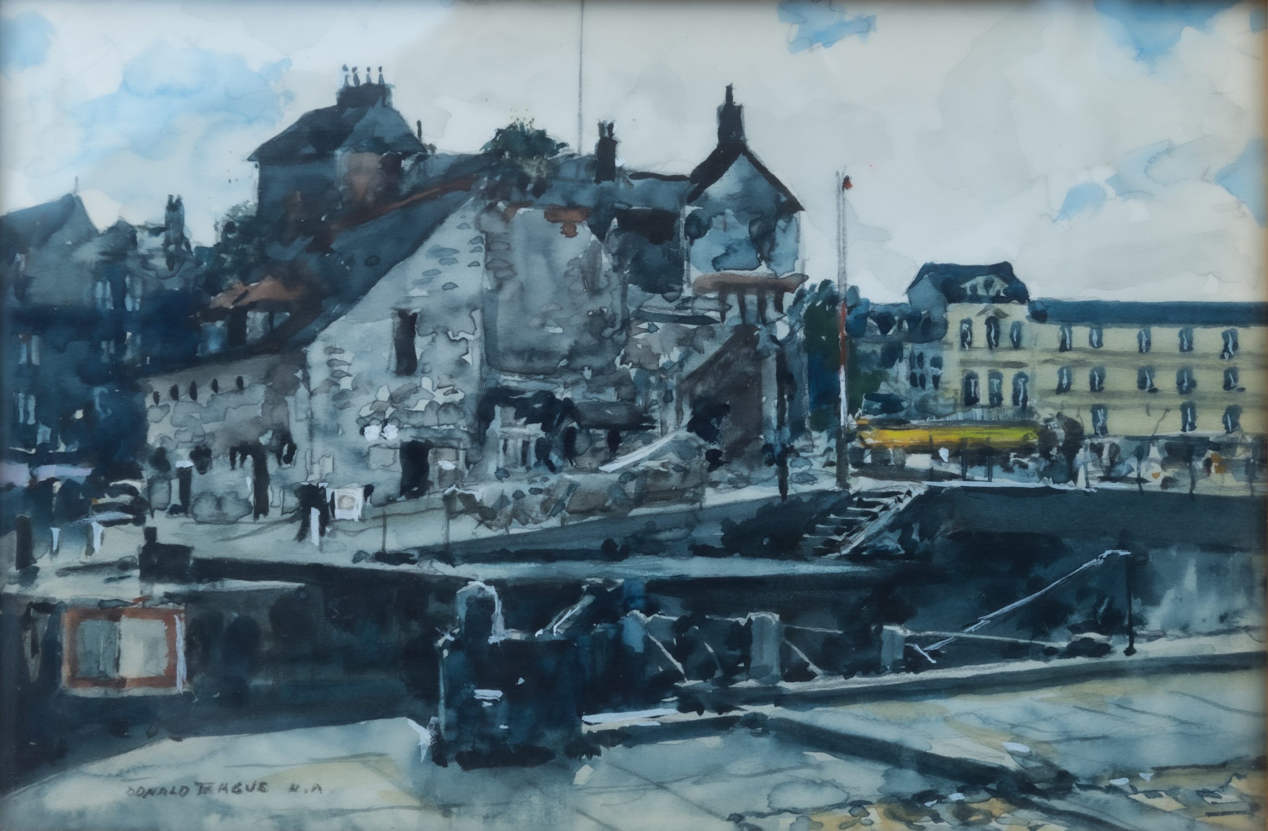 Donald Teague N.A. Donald Teague N.A. (1897-1991) Brightening Sky, Honfleur w.c. 6 x 9″, original frame $2600