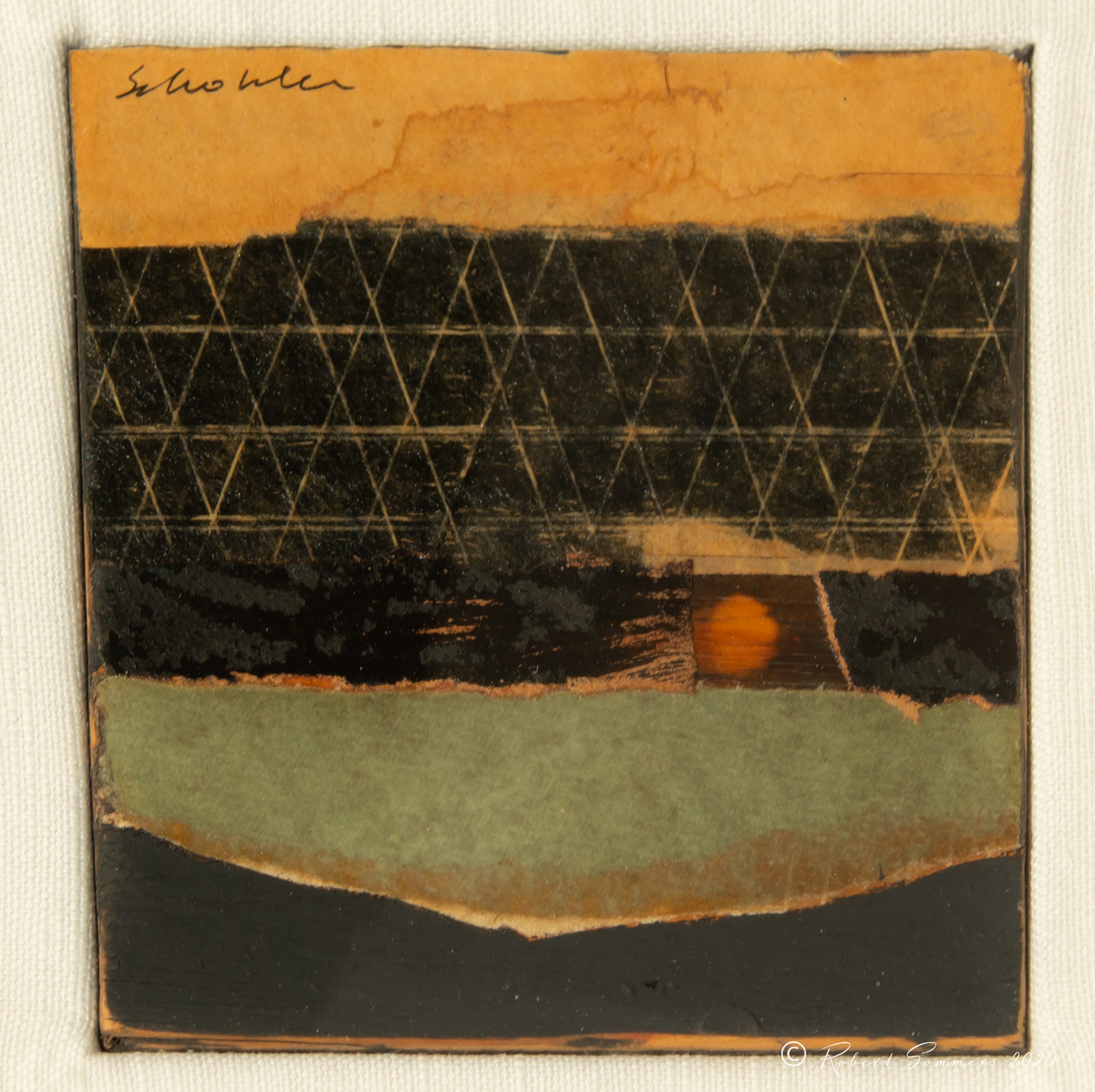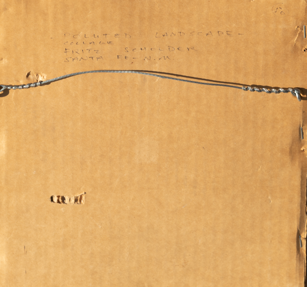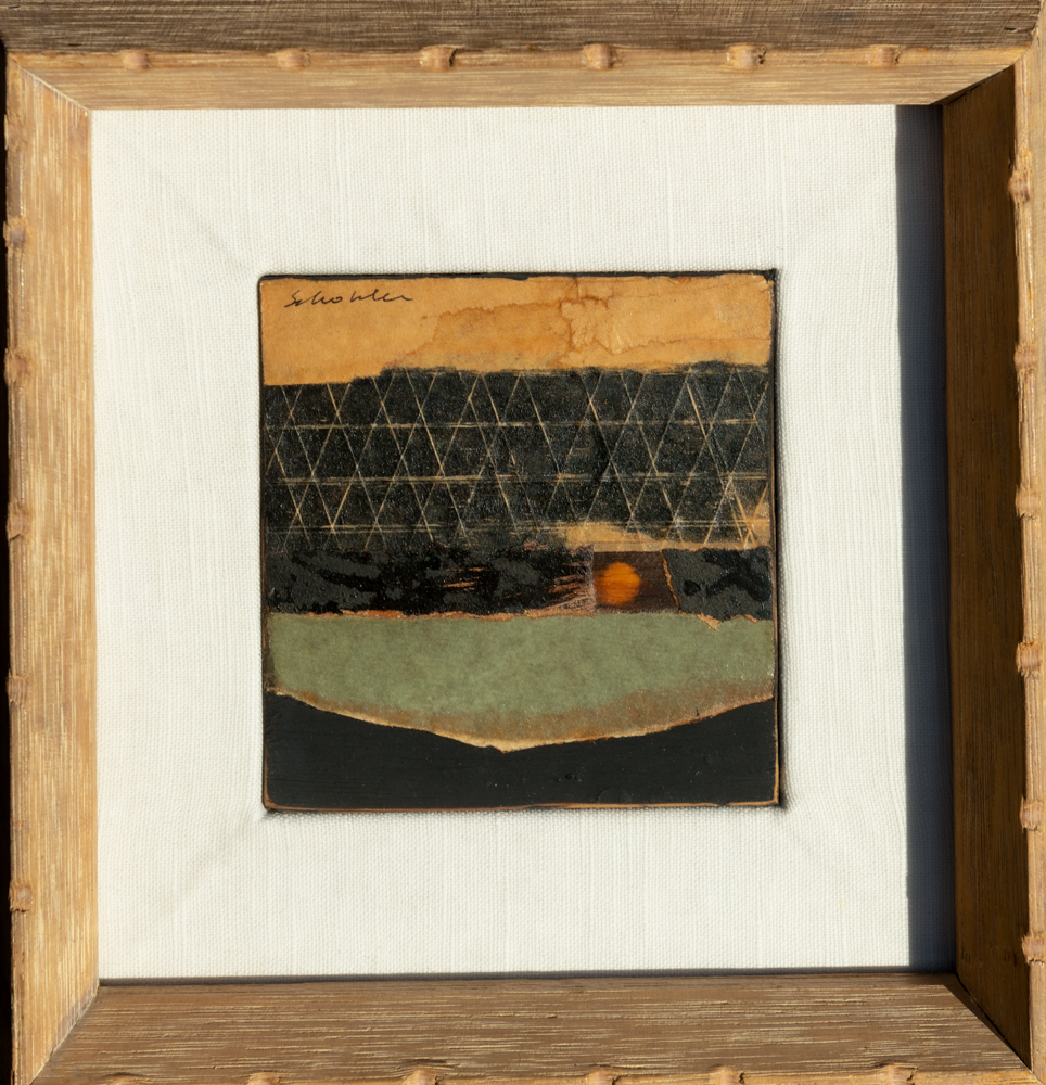 This is a piece that Scholder framed himself. I put a clean mat on it. It is very early and quite experimental. He used to pieces of construction material to create it. 11 x 11″ framed. A friend of mine in Santa Fe knew him during this period of his life and remembered the powerful work.