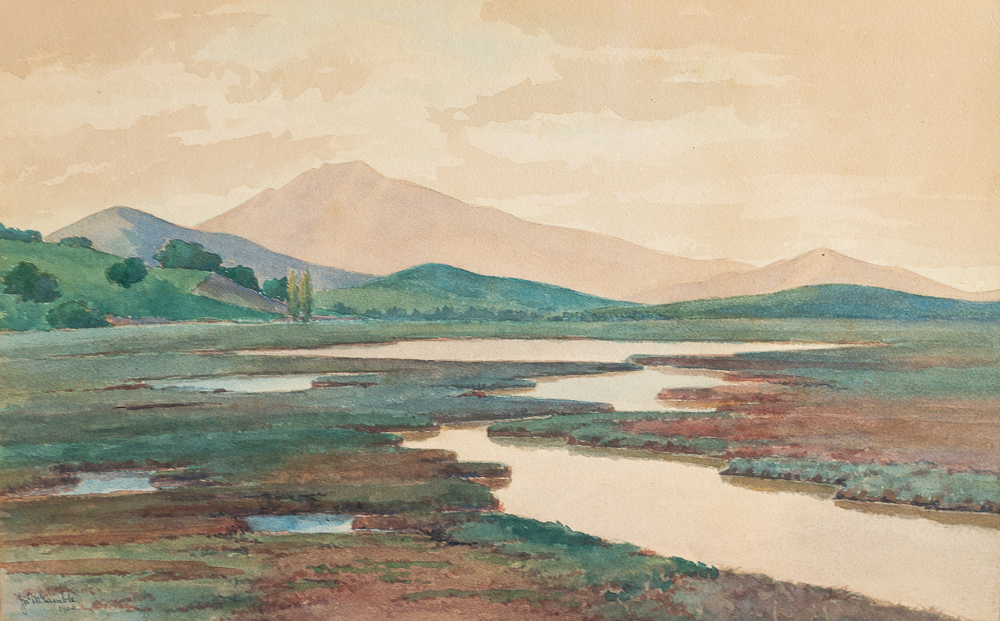 John Gamble John Gamble (1863-1957) Mt. Tamalpais and Muir Woods, 1900 Watercolor 12 x 24″ signed lower left original frame $4800