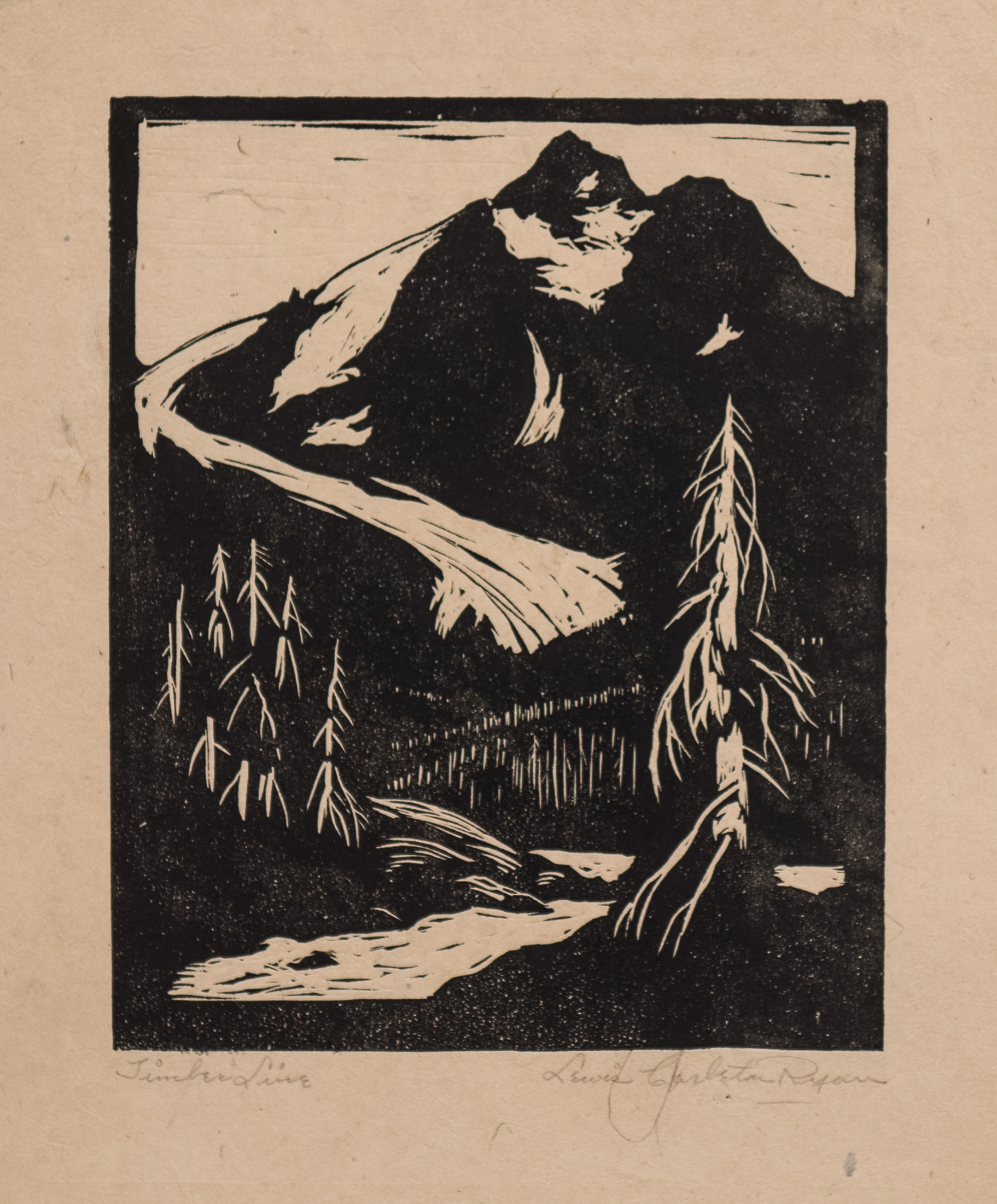 Timberline woodcut 8 x 6″ pencil signed $250