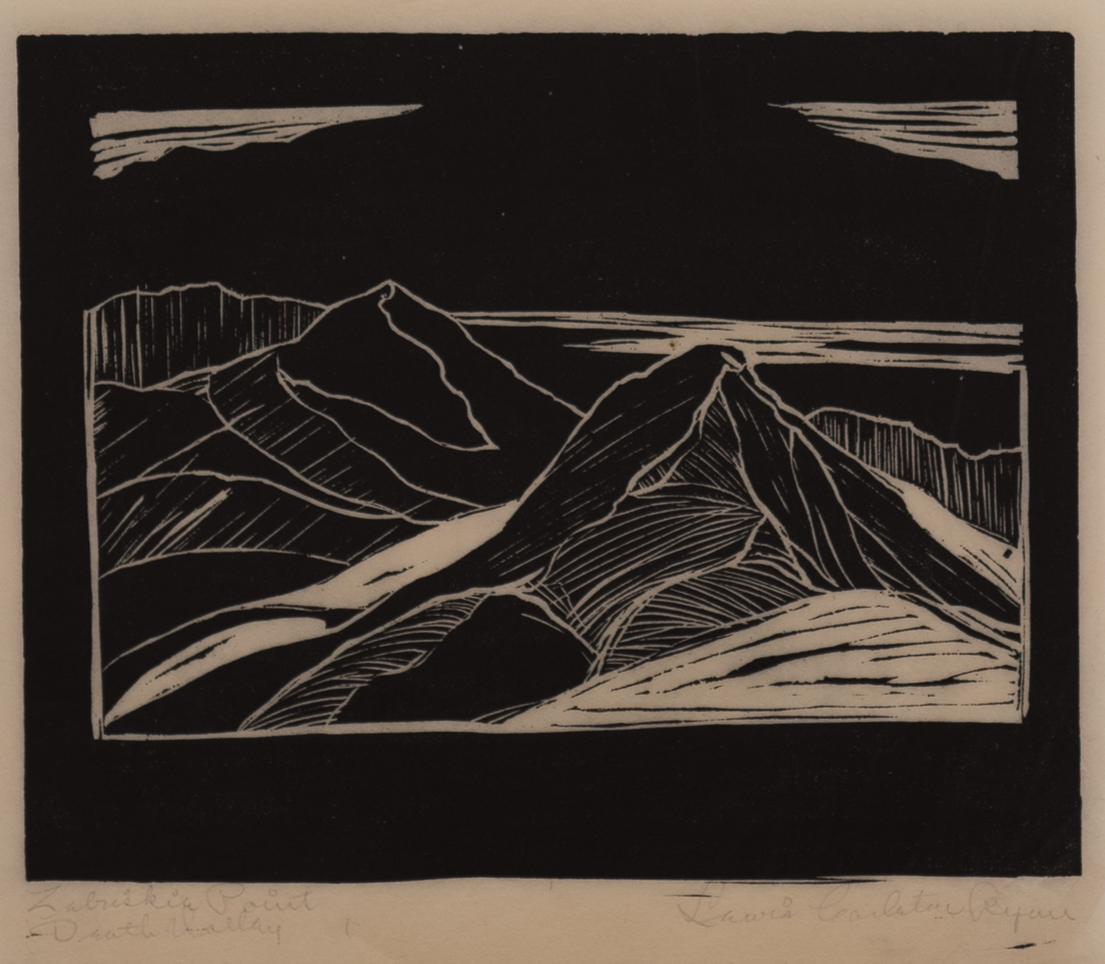 Lewis Carleton Ryan ( 1894-1982) Zabriskie Point, Death Valley linocut , 5 &1/2″ x 7″ titled, pencil signed $250