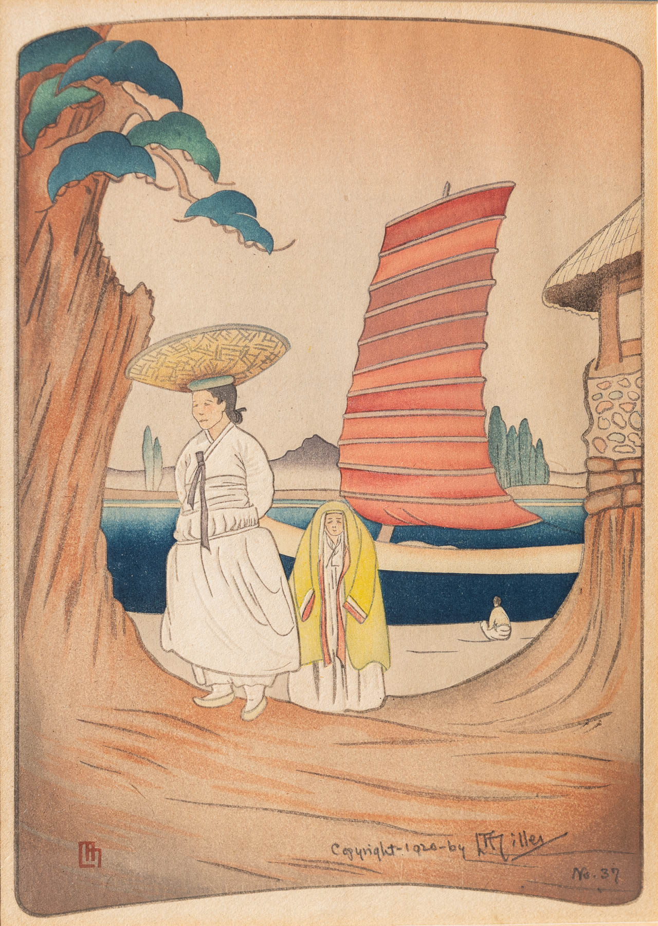 As an artist she did oil painting, watercolor, book illustrations, photography, and prints. Her collectors include some of Japan’s most prominent people including Empress Nagako. In America, one of her closest friends and the person who provided her a home in this country was Grace Nicholson, Pasadena art dealer.