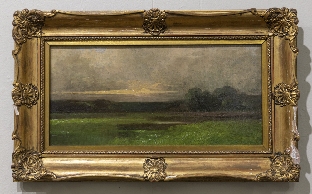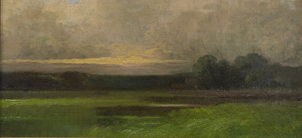Max Suppantschitsch Max Suppantschitsch (1865-1953) tonalist landscape oil on canvas 9 x 18 & 1/2″ signed on top stretcher sold
