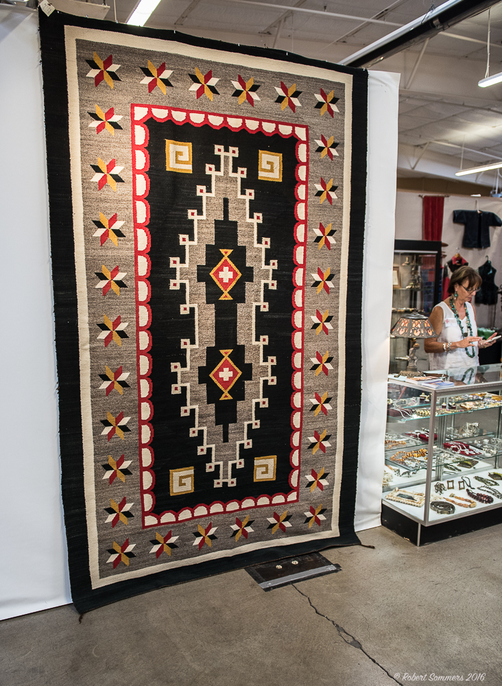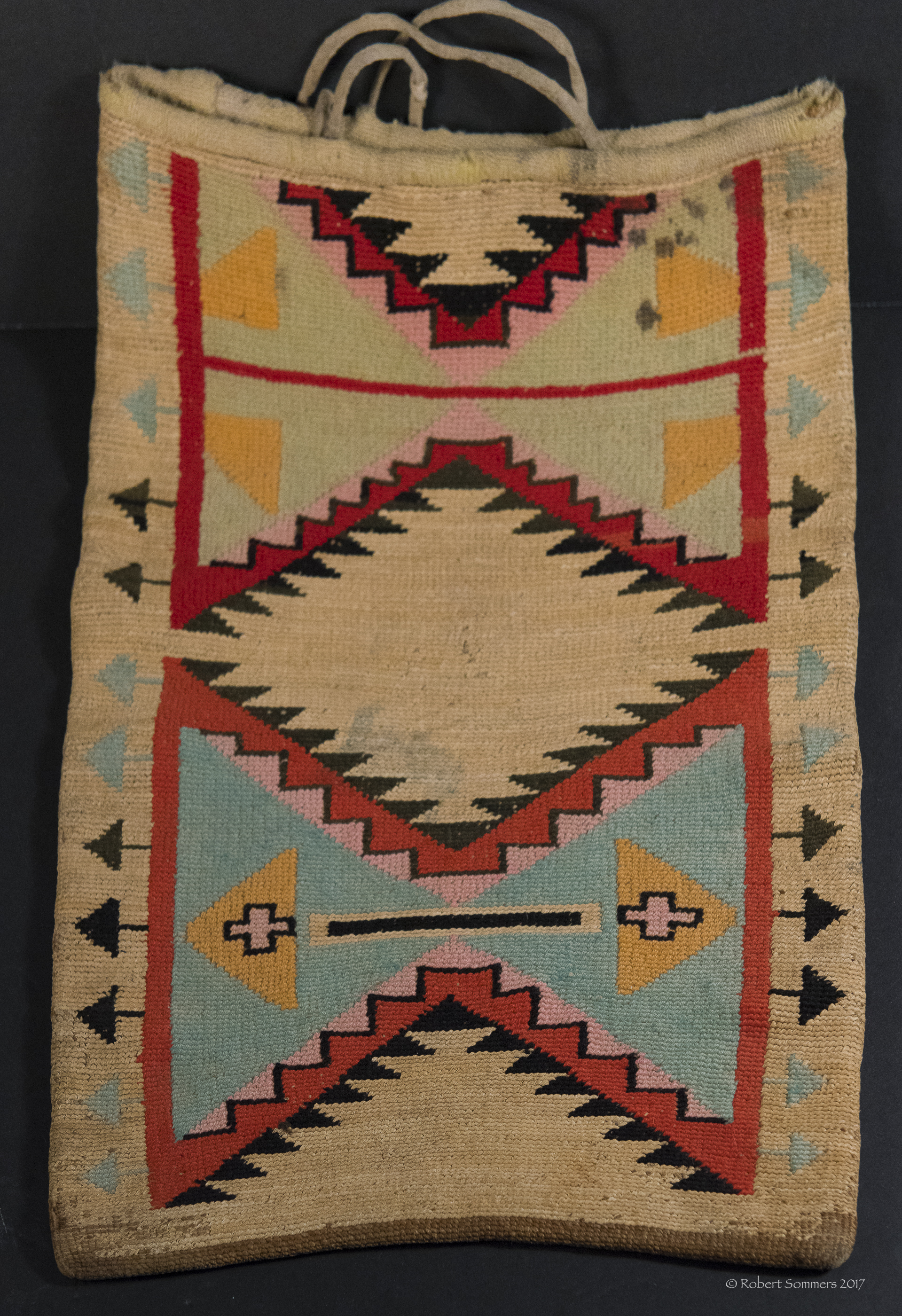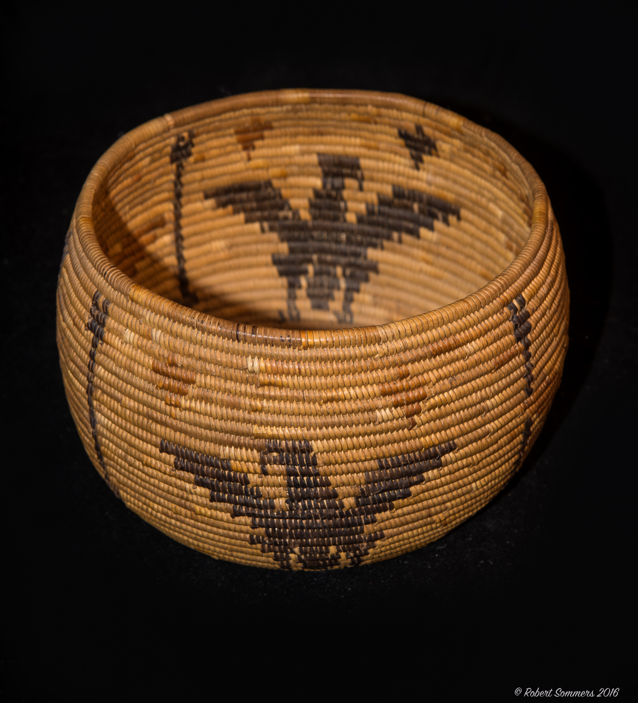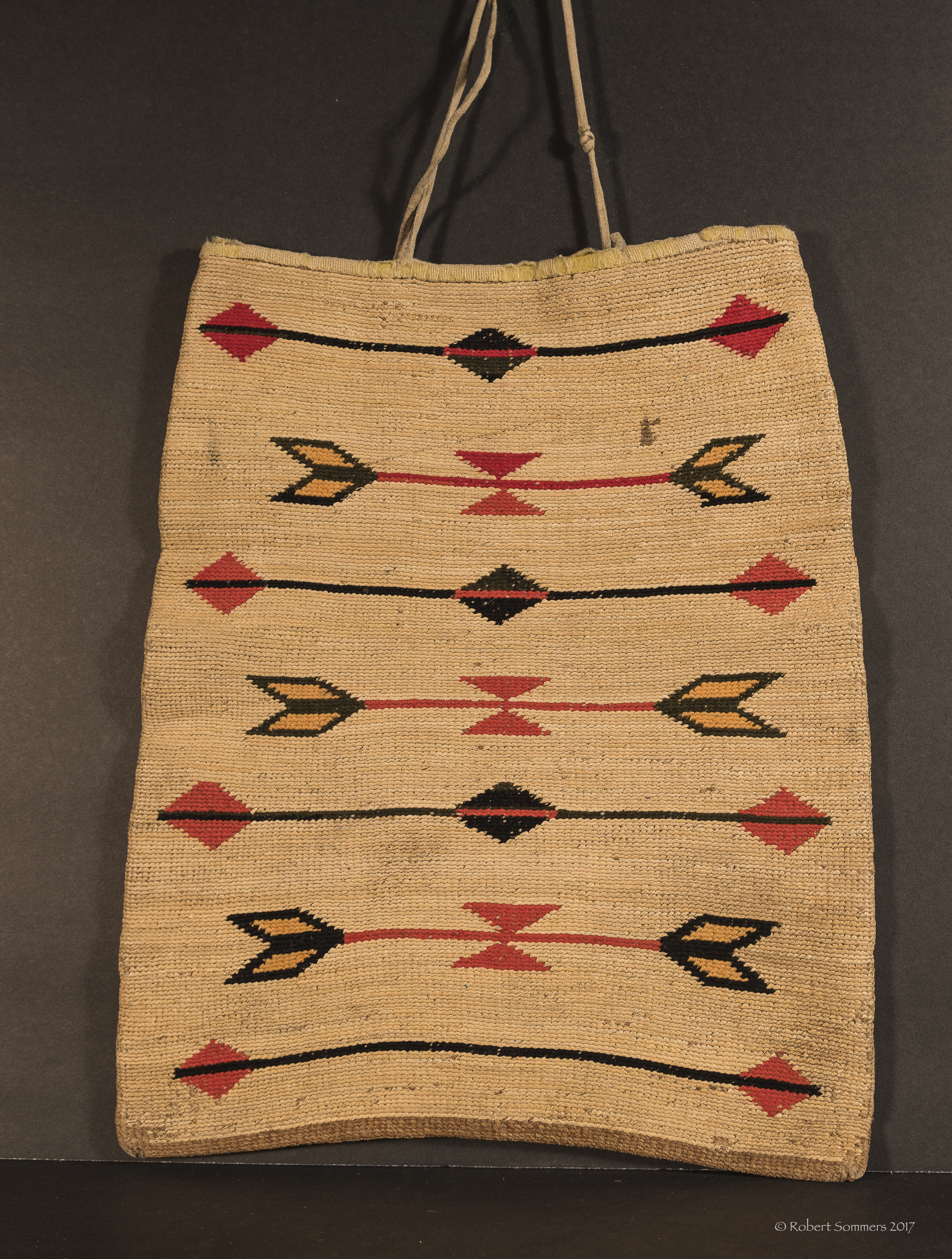 Beautiful and large acoma olla, circa 1910-20, original patina, no restoration 10 & 3/4″ x 12″ soldacoma (1 of 1)-3This is a fantastic navajo rug. 1930’s/40’s Bisti region black background with valero stars and shell scallops. 111″ x 68″ soldnr2 (1 of 1)This is an incredibly well woven 1920’s/30’s era navajo blanket. Very fine, incredible handle. 74 birds of all sorts. 68 x 52″ Absolutely gorgeous, best of class.soldnr (1 of 1)-2Early plains moccasins, possibly Ute. Lovely and supple, soldum (1 of 1)Gigantic Zia Olla with parrot figures  – Seferina Bell 19″ diameter at girth, signed, p.o.r.sb (1 of 1)-3Early Apache basket with multiple dogs and crosses, rare cross and circle iconography, possibly from daagadigha. 16″ diameter soldab (1 of 1)Early Mission rattlesnake basket 16 &3/4″ d. Two broken stitches at rim. mrb2 (1 of 1)-2mrb1 (1 of 1)early mission pictorial basket with condors, arrowheads and arrows, variegated juncas and sumac. 4 x 6″ From Don Bennett collection, soldmb4 (1 of 1)mb3 (1 of 1)-3mb2 (1 of 1)-2lalkawilas