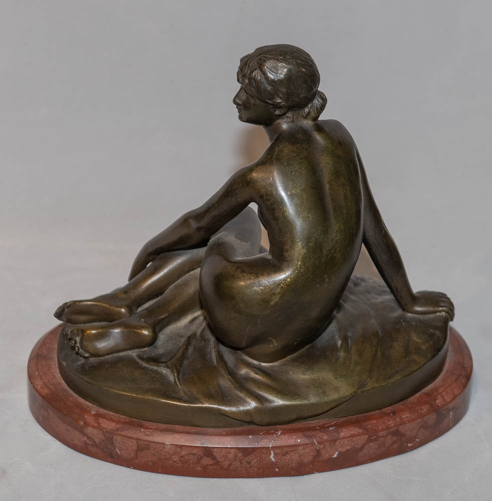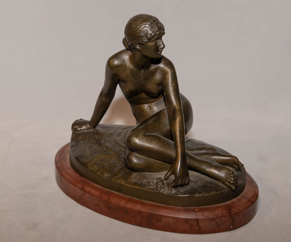 Peter Breuer Peter Breuer (1856-1930) Spring Bronze sculpture on marble base 7″ x 8″ x 5 & 1/2″ original patina, faintly inscribed in base $650