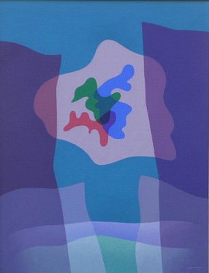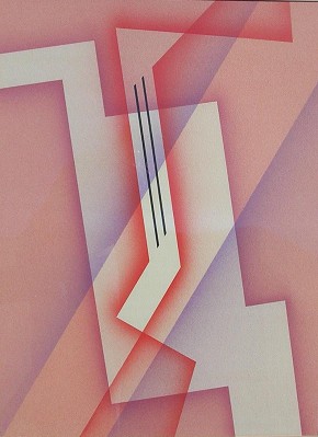 Raymond Jonson (1891-1982) Red Rhythm ,1944 30 x 22″, tempera, original Jonson frame with detailed hanging instructions verso. signed. sold