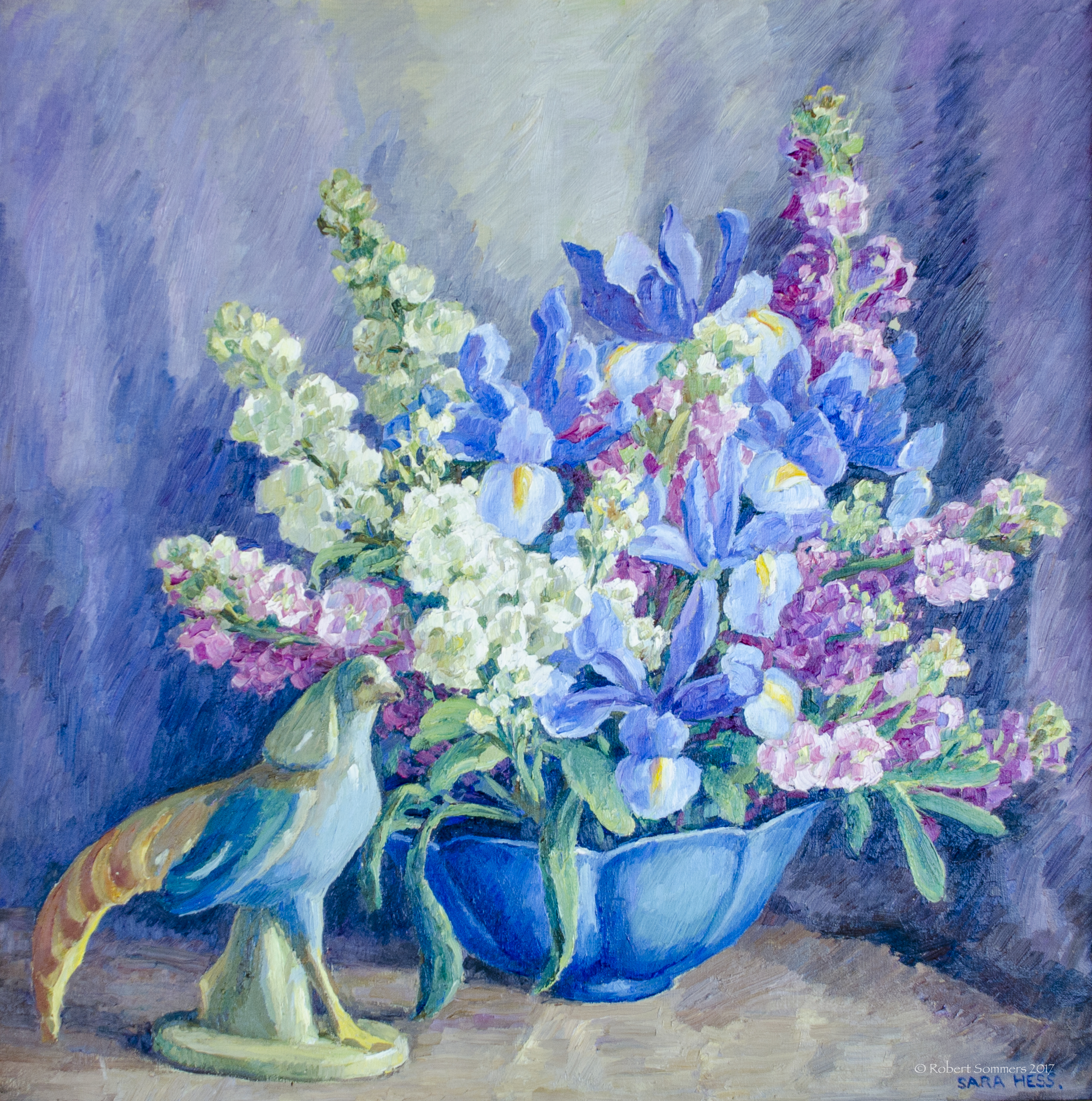 Sarah Hess (1875-1960) o/c Blue Lilies 25 x 25″, framed, very lovely, mint painting p.o.r.