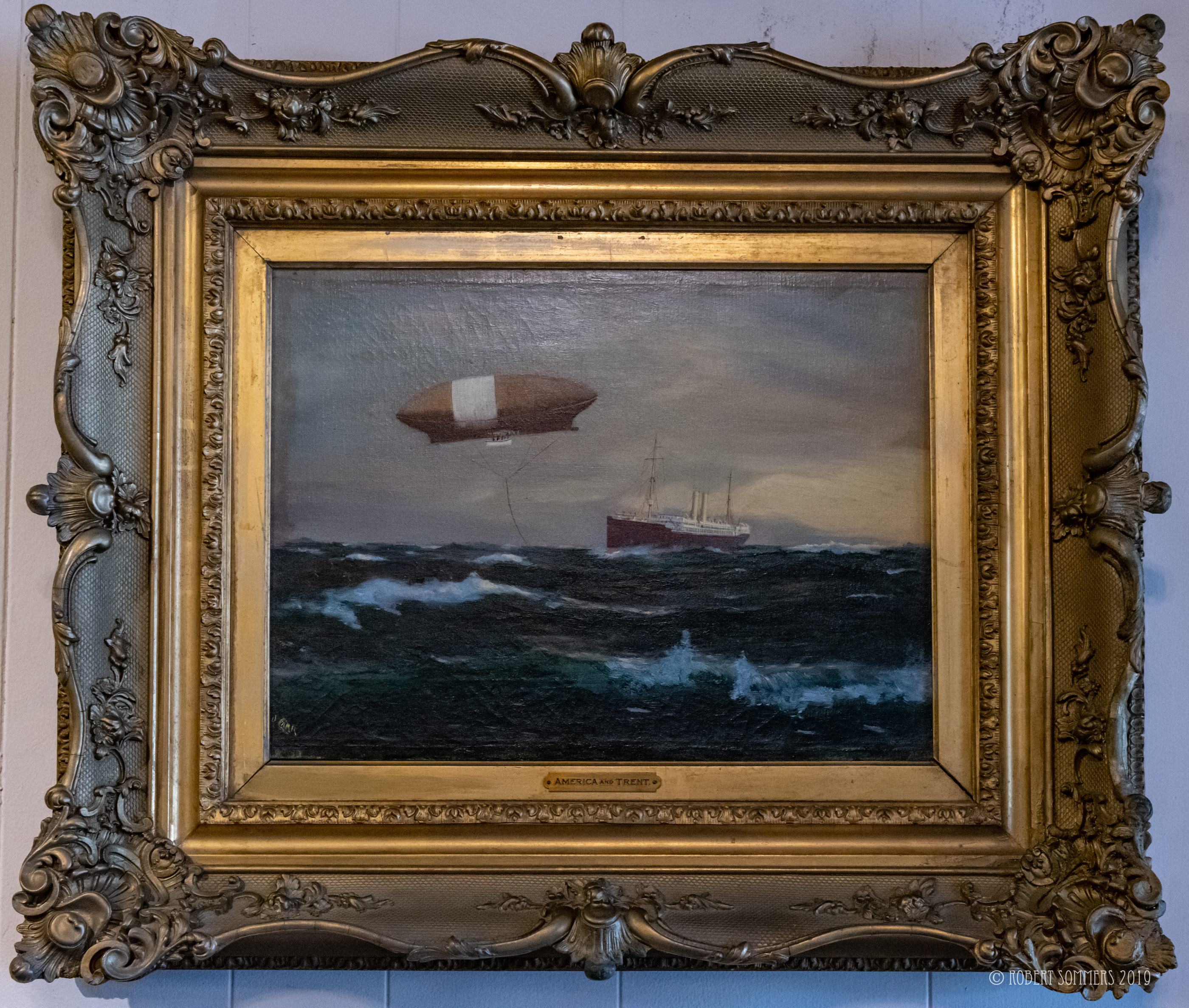 usnThis is a really interesting painting of some Pacific Atoll from World War II. There was another painting underneath with a polar bear on an iceberg that I still have. It is signed Richard Si****, 1944 United States Naval Reserve. I sent a picture to the Naval Historical Archives but they couldn’t make the sig.  15 x 19″ framed in a stark white original frame sold