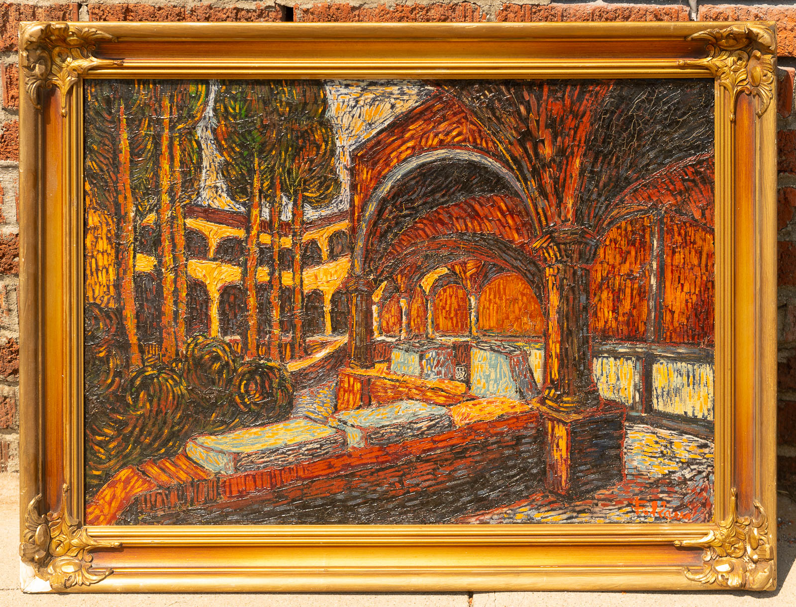Unidentified artist, Faldana, Falzana… palette knife oil on canvas 20 x 28″ some frame damage, wonderful work. $800